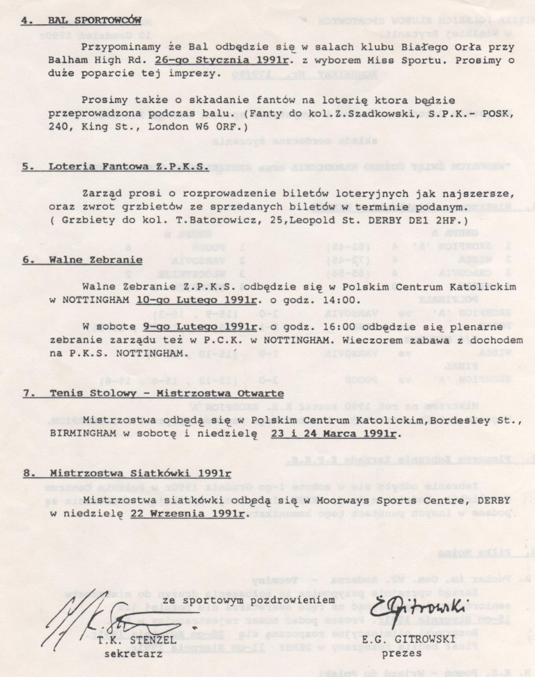 prezes EG Gitrowski (Warta Derby), sekretarz TK Stenzel (Cracovia Melton Mowbray)
