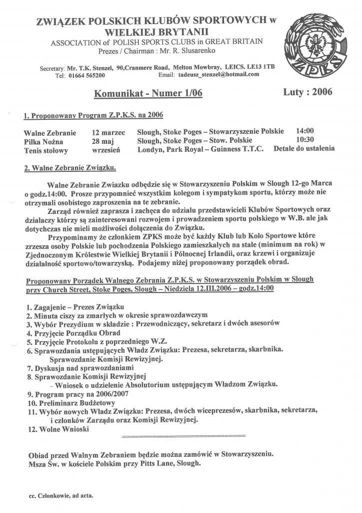2006 powrót tenisa stołowego Posted By: ionos_zpks_admin 6 February 2006 2006 – Tenis Stołowy wrocil do programu Walne Zebranie – Stoke Poges Pilka Nozna Tenis Stolowy – Park Royal