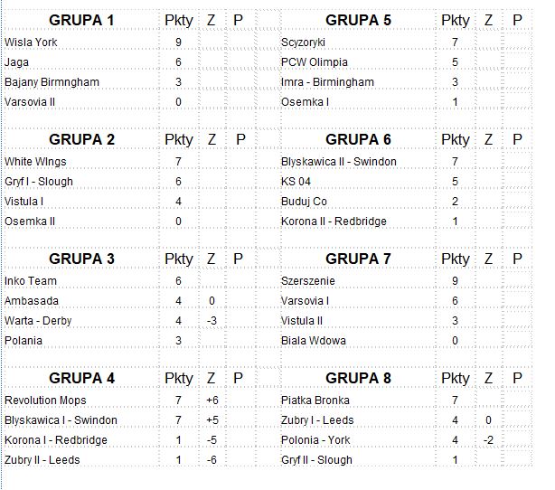 32 drużyn wzięły udział w rozgrywkach o Puchar Przechodni im. Związku Polskich Spadochroniarzy. Wyniki grup eliminacyjnych podajemy niżej.