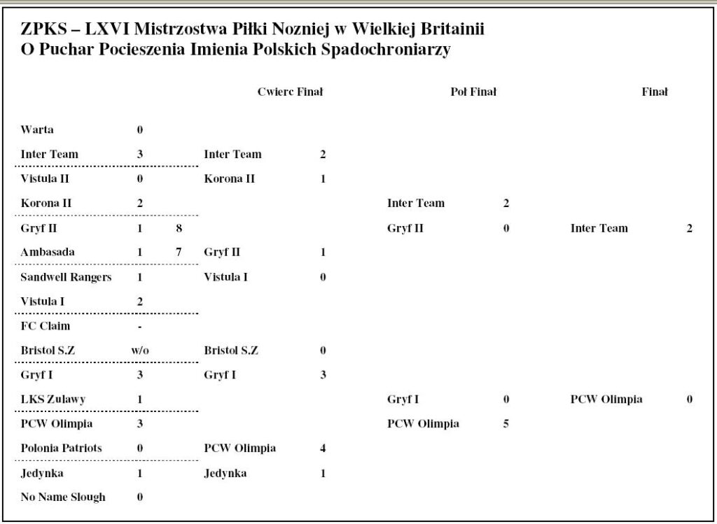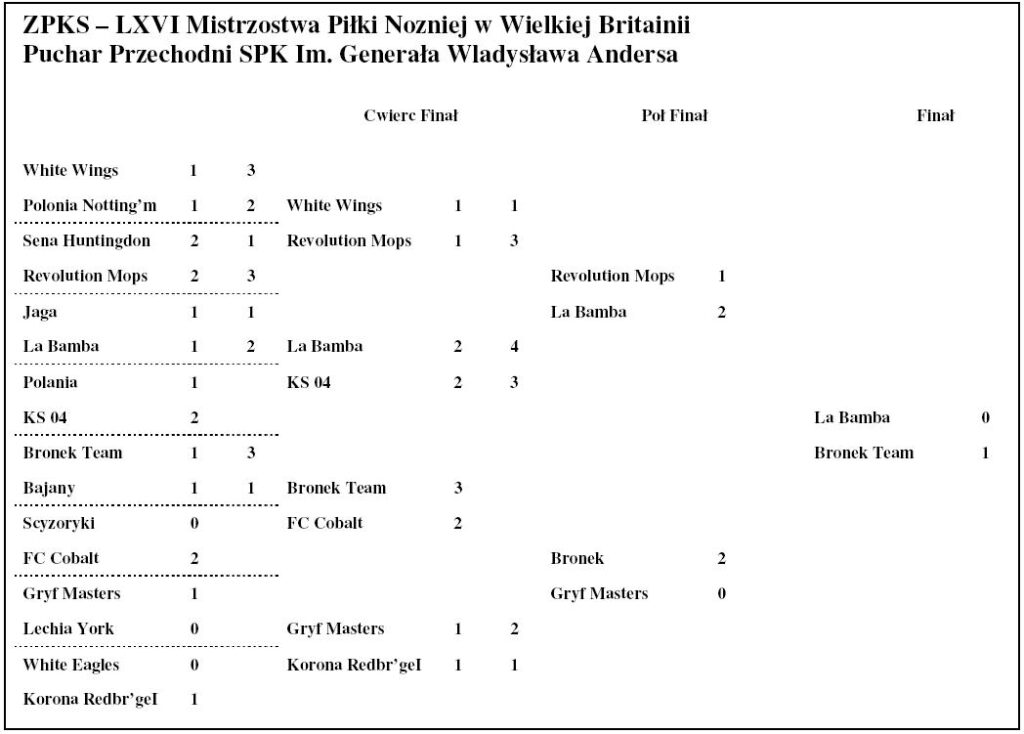 Football 2014 Sunday May 25 Posted By: admin 25 May 2014 66th Polish Football Championships in Great Britain. The SPK General Wladislaw Anders Trophy Youtube video 2014-Wyniki-EiminacjeDownload 2014-Wyniki-PocieszeniaDownload 2014-Wyniki-AndersDownload