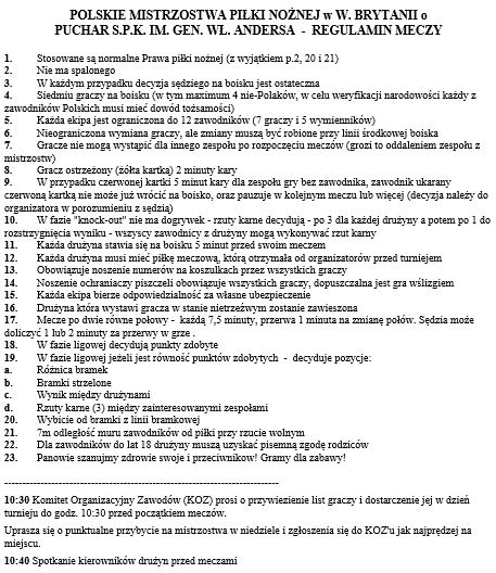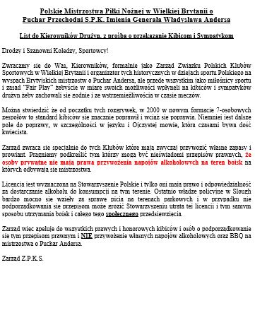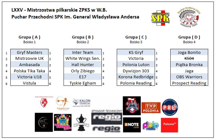Puchar Andersa – Mistrzostwa piłkarskie ZPKS w W.B. – News ! Mamy już 24 drużyny które zagrają w tegorocznych mistrzostwach i wszystkie potwierdzone wpłatą wpisowego ! 🙂 Dzisiaj rano nastąpiła zmiana jednego uczestnika , gdyż Karmę Leicester ( nie mogli uzbierać składu w tym terminie , czego żałujemy ) zastąpiła Polonia Luton . Ostateczną listę uczestników możecie zobaczyć na załączonym zdjęciu .