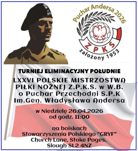 Turniej Eliminacyjny Półudnie : Niedziela 26 kwietnia 2026, Stowarzyszenia Polskiego “Gryf” SL2 4NZ w Slough