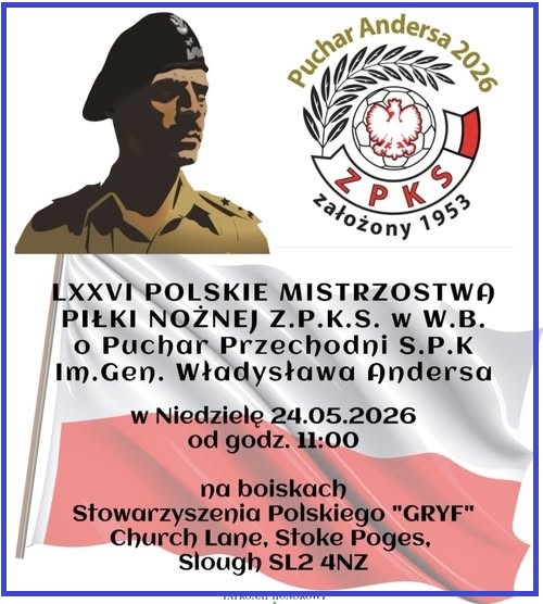 Finale: Niedziela 24 Maja 2026, Stowarzyszenia Polskiego “Gryf” SL2 4NZ w Slough