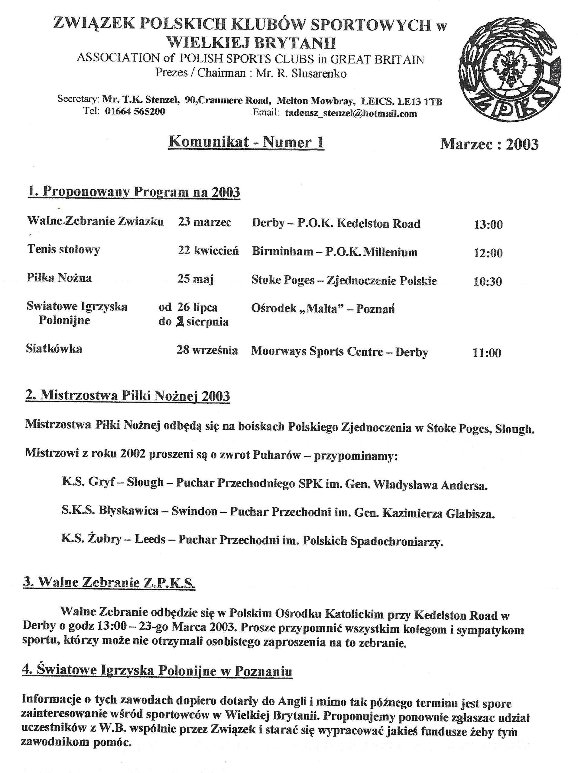 - 12 Marzec 2006 Walne Zebranie Stoke Poges